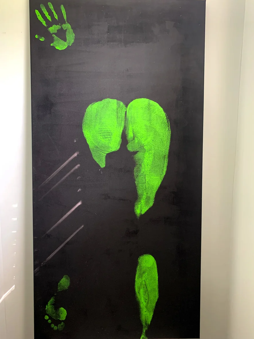 get custom made ass print on large canvas. you get to choose background and body paint color, also receive video and photos of it being made and signed